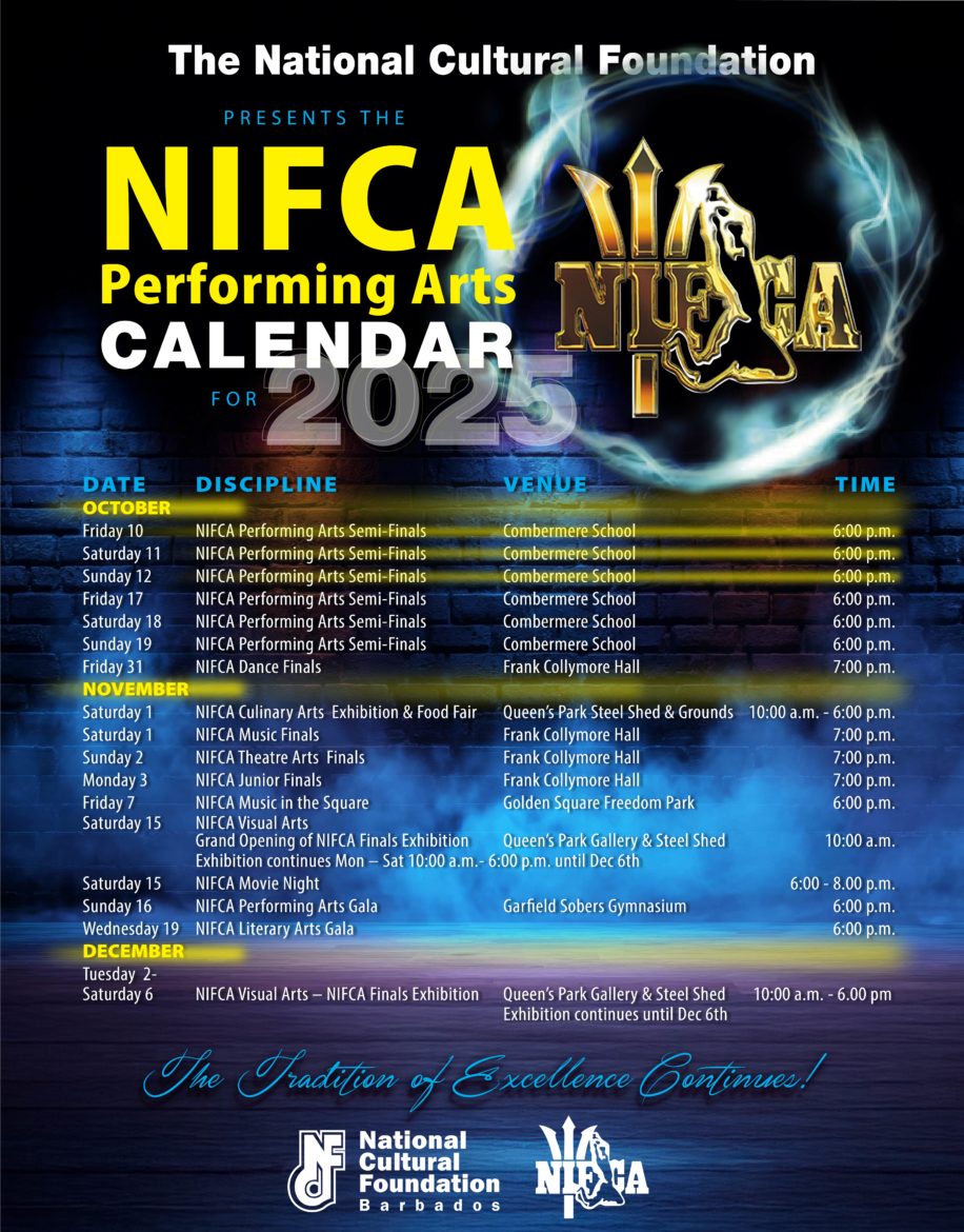 Since its inception, NIFCA has stood as the nation’s leading celebration of Barbadian artistry and imagination — a festival that not only highlights local talent but also provides a platform for creative growth and national pride. Each event on the 2025 calendar embodies that commitment, ensuring that the island’s creative pulse continues to thrive across generations.